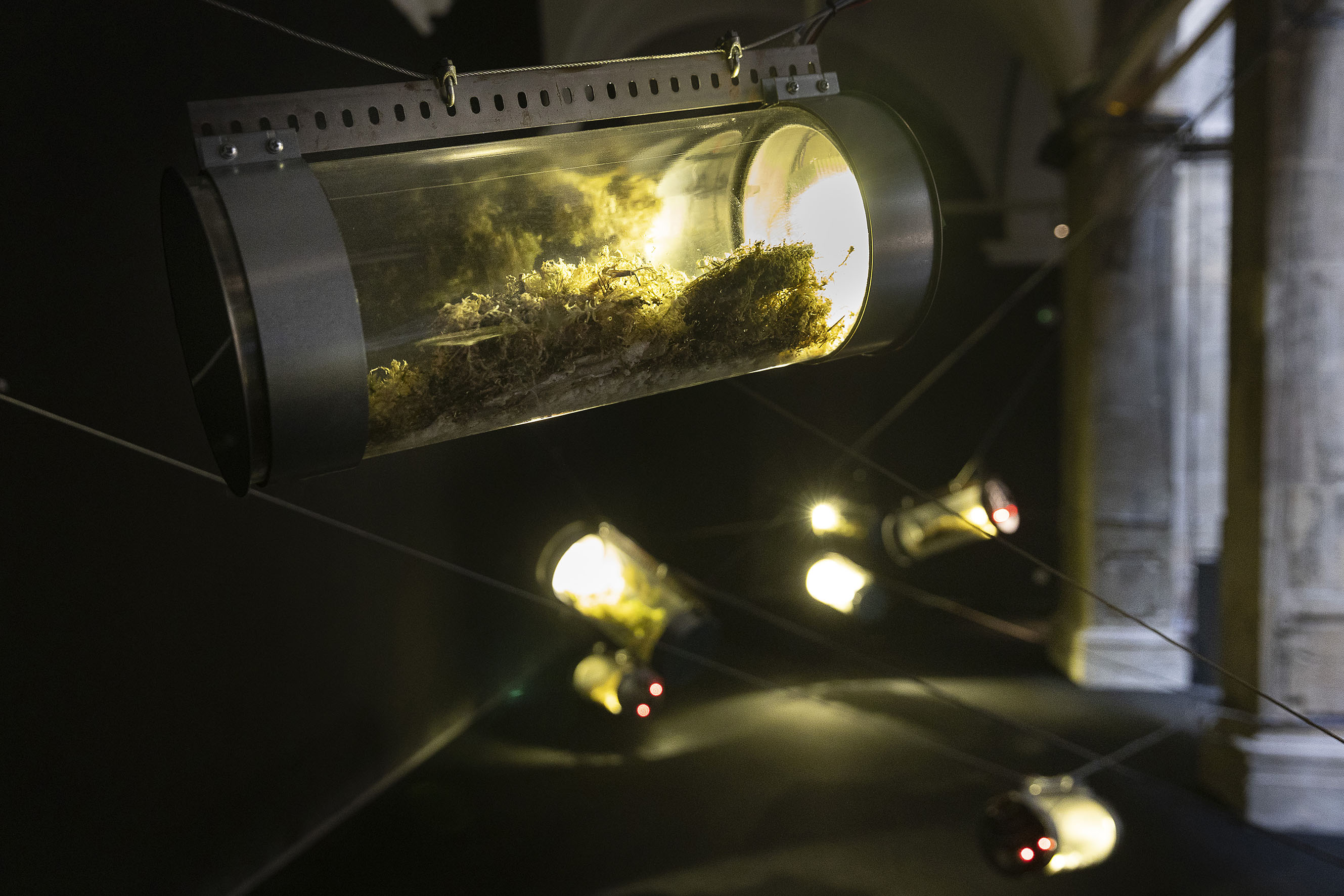 Instal·lació que travessa els llenguatges de l’art sonor, el bioart, l’arquitectura i els sistemes electrodigitals. Amb influències de la ciència-ficció i la dis-u-topia, Murmuros és un espai en transformació constant, on diferents organismes —vegetals, microbians i hominoides— construeixen involuntàriament l’univers sonor i lumínic que l’envolta.