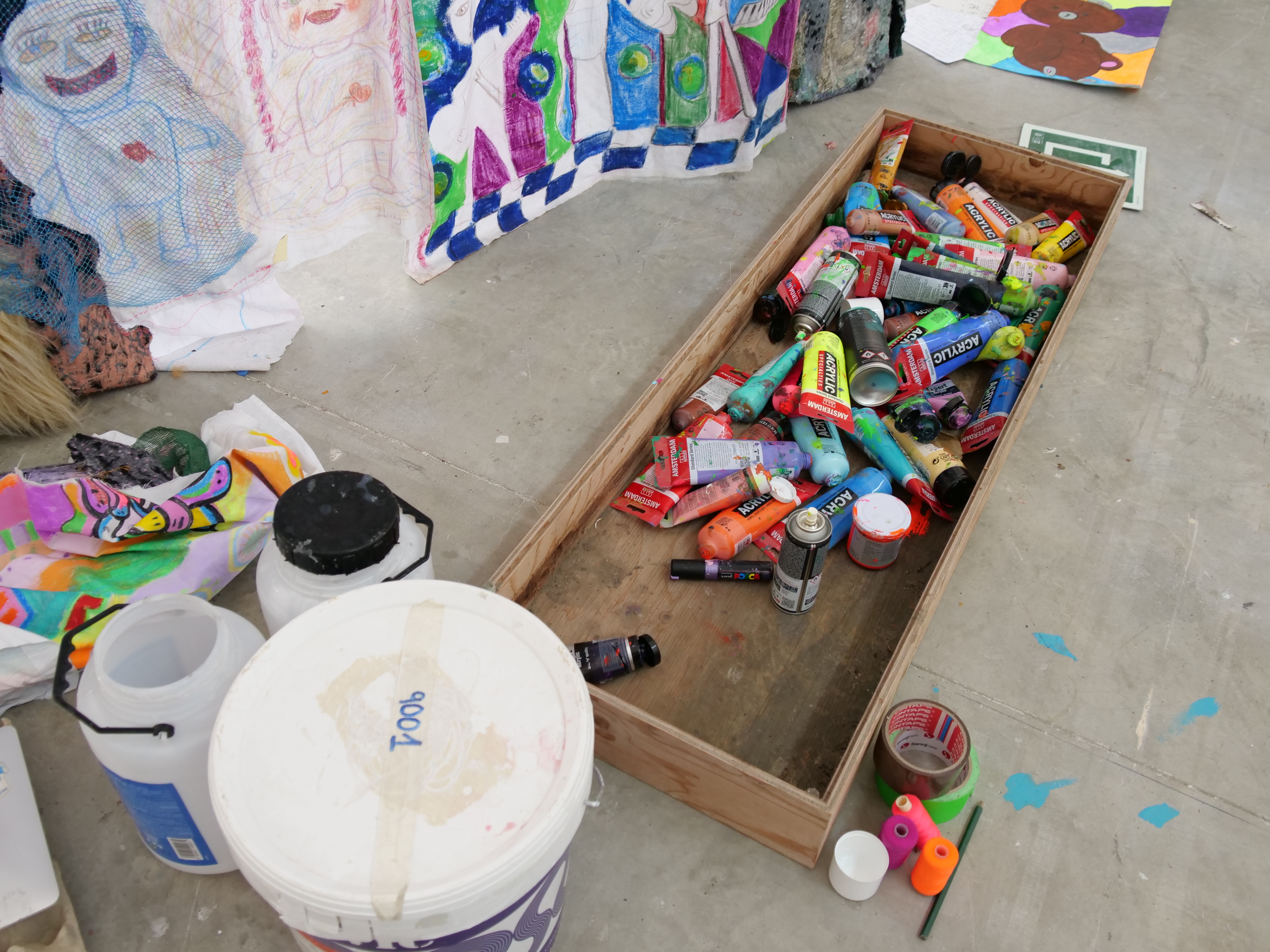 Des que es va desmuntar l'exposició L'altre costat, a partir del dia 2 de juny i fins al dia mateix de la inauguració de "Màquines del Temps", el passat dijous 27 de juny, l'artista Toni Hervàs ha estat treballant incansablement en la creació de les seves escultures, i el muntatge i distribució de les peces dels altres artistes, que conformen un maremàgnum cromàtic d'intensitats i anhels. L'elaboració de les seves escultures l'ha dut a terme al mateix espai on ara es troben, i des del Santa Mònica hem pogut presenciar aquest procés únic.