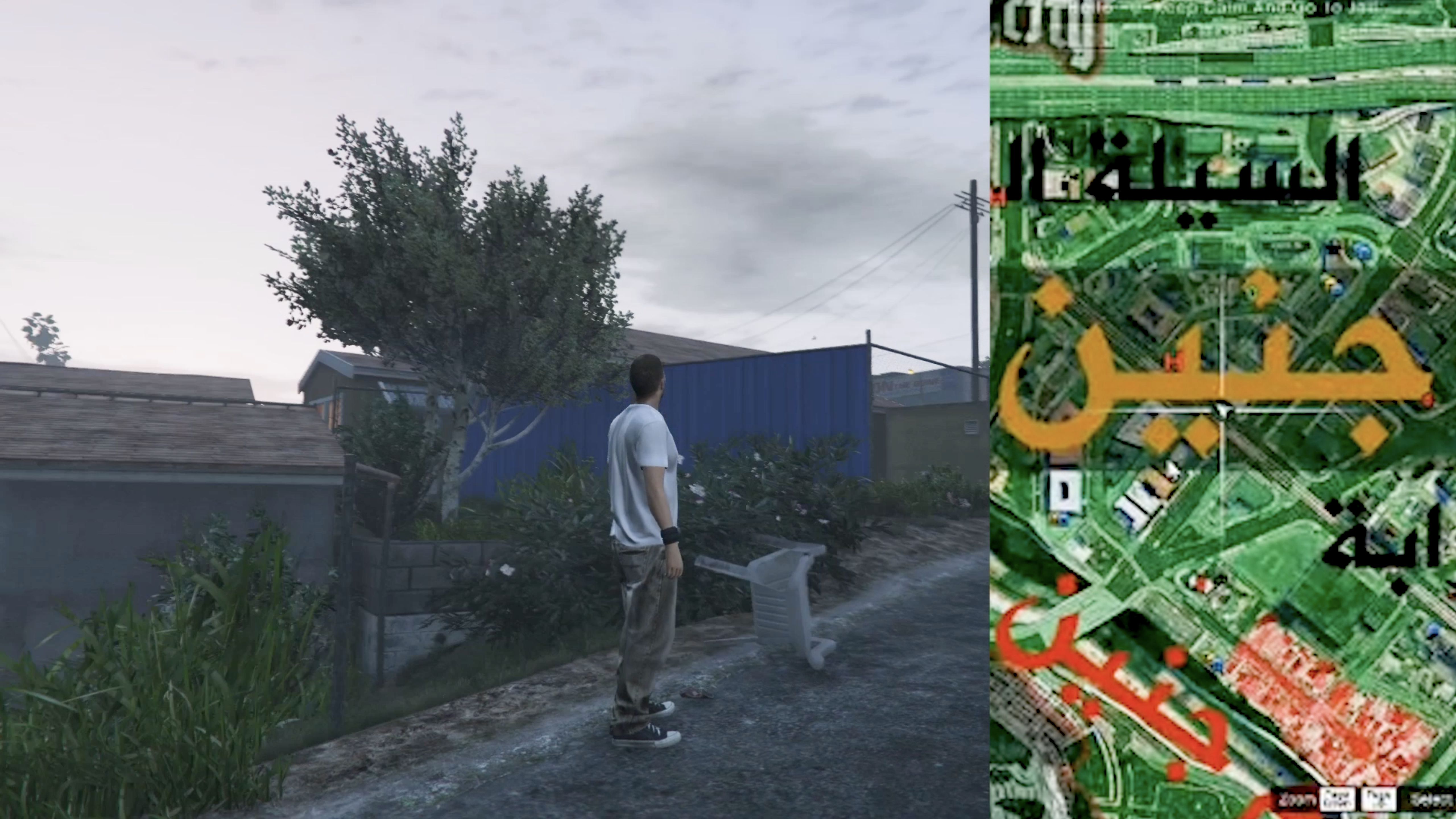 In RPGs (role-playing games), one could say that real life can be rehearsed in a superstitious manner, with supernatural beings and worlds. Since the emergence of computer processing power and video games, the third world has been a source for world-building and a space in which to apply game operations. Those games are not isolated from the sociocultural and political environment that they are developed in. However, third-world gamers, developers, streamers, and hackers have managed to modify those games and apply their own hyper-reality in order to rehearse their world. This project explores how Palestinian players, GTA mods, and servers are simulating real life under colonial rule. Like An Event In A Dream Dreamt By Another - Rehearsal examines Los Santos as a corollary to Palestine.