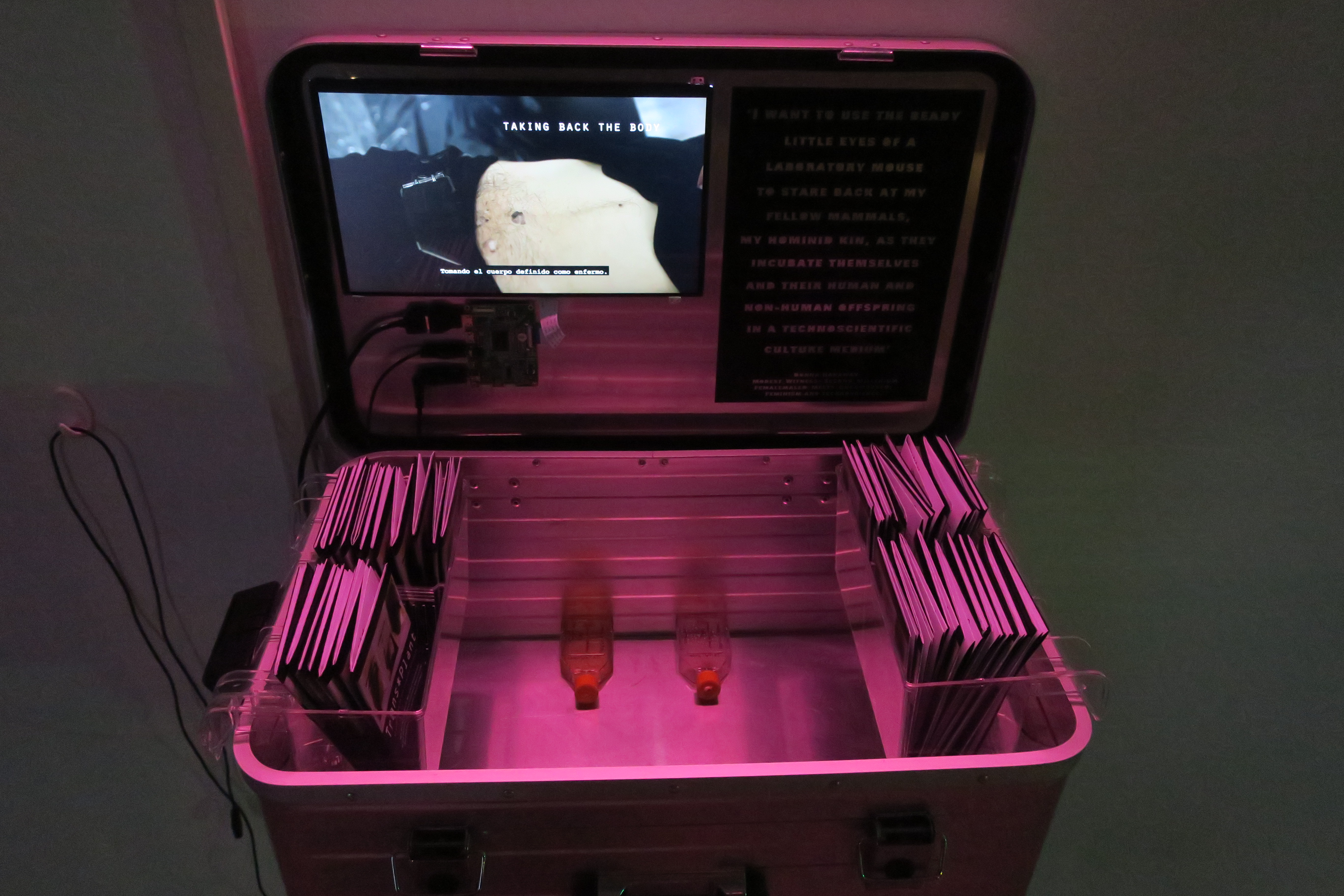 Trans*Plant is a transdisciplinary research project that reflects on the black boxes of expert knowledge and the infrastructures – normative, technical, ideological – that dominate the politics of the living, health and bodies. Based on self-experimentation and the use of DIWO (do it with others) methodologies, it is developed through several interconnected lines of work. Open the Identity consists of the implantation of a chip in the body of one of the members of the collective, similar to the chips used for pets, guinea pigs and livestock for their identification and insertion in the database networks. Open the Pill is a community health proposal and a critique of the notion of the healthy body, which investigates photodynamic therapy in the treatment of genital warts caused by the human papillomavirus (HPV). The performance Open the Molecule takes the imagination of a possible plant-becoming-human to a molecular level through a real, live transfusion of chlorophyll. For its part, Open the Seed opens the debate on biopatents and the survival of colonial mechanisms in access to health: based on an action with seeds of Artemisia Annua, the plant from which the active ingredient of antimalarials was recently extracted, anticipates a future of coexistence between different medicinal traditions. Finally, the story Open the Code brings together these different planes in a speculative fiction about the encounters between species, halfway between artistic research, activism and open science.