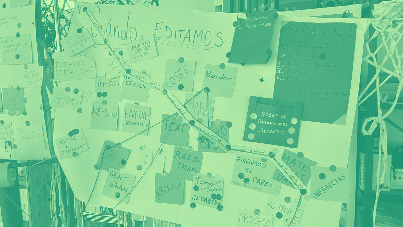 Así mismo, pensamos en lo sucio: ese espacio desconocido de la edición, esa etapa del viaje en el que coexisten las dudas, los posibles, las ideas inconclusas y aquellas que dialogan con otros tiempos y otras formas. Sostenemos que el proceso de edición no solamente se limita a producir libros o publicaciones; más bien, proponemos expandir la definición, priorizando los procesos por encima de los productos, más allá de su dimensión técnica o estrictamente “editorial”.